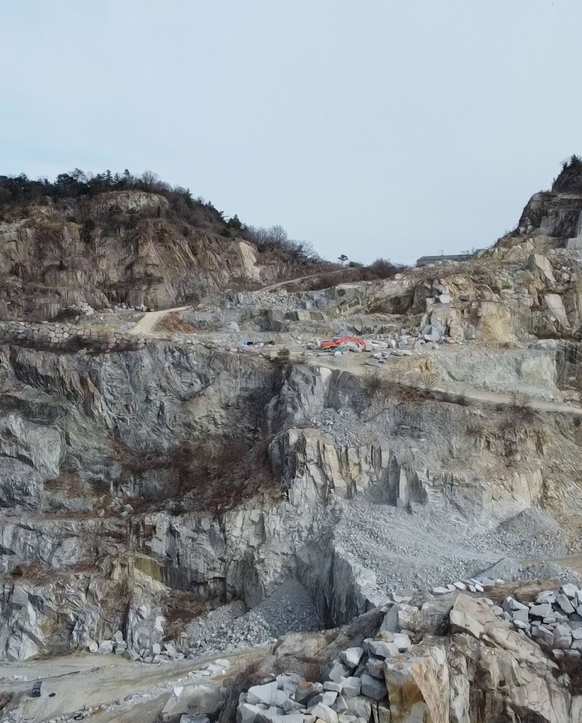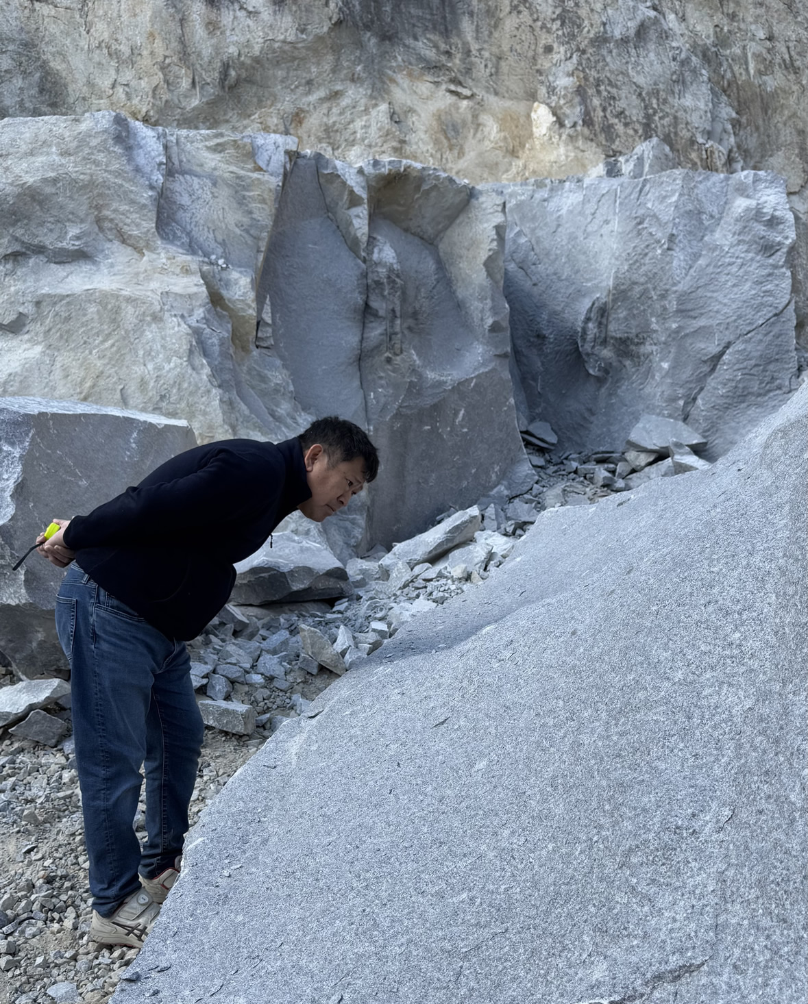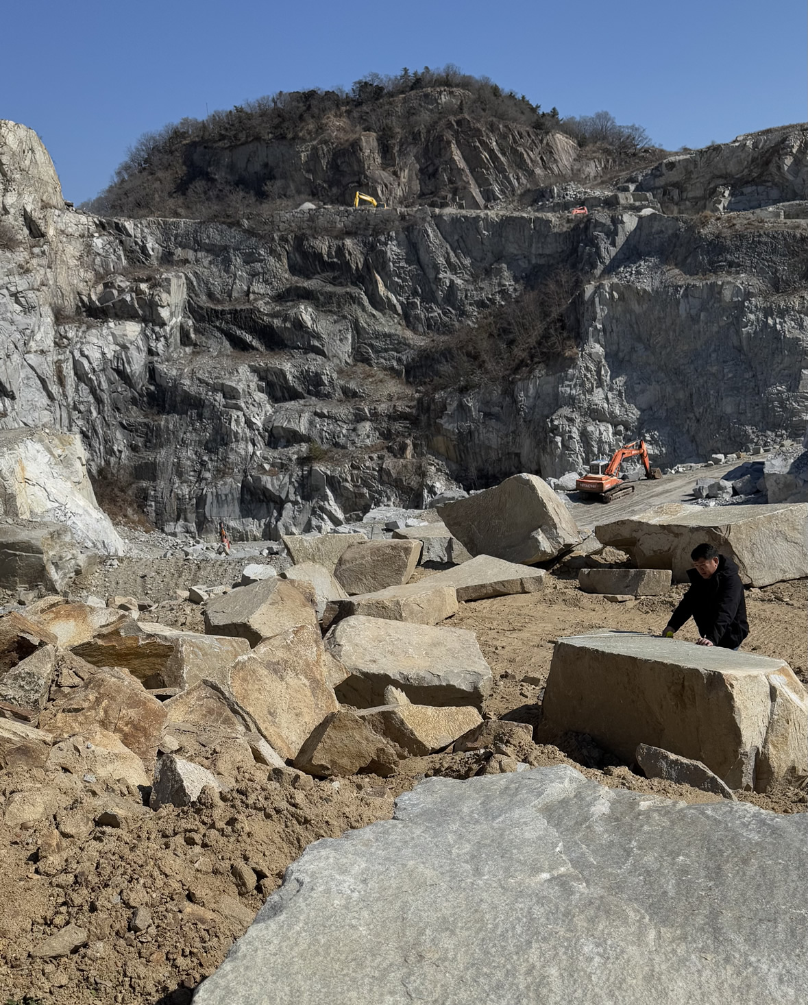 石の採用にあたっての打ち合わせ。 どの部分にどの石が合うかなど細かく聞き取り。 丁場にある大量の石材から 石のサイズ、石の種類、石の形などから選定。 石はふたつとして同じ石がない自然ものなので、 石の選定は重要となります。